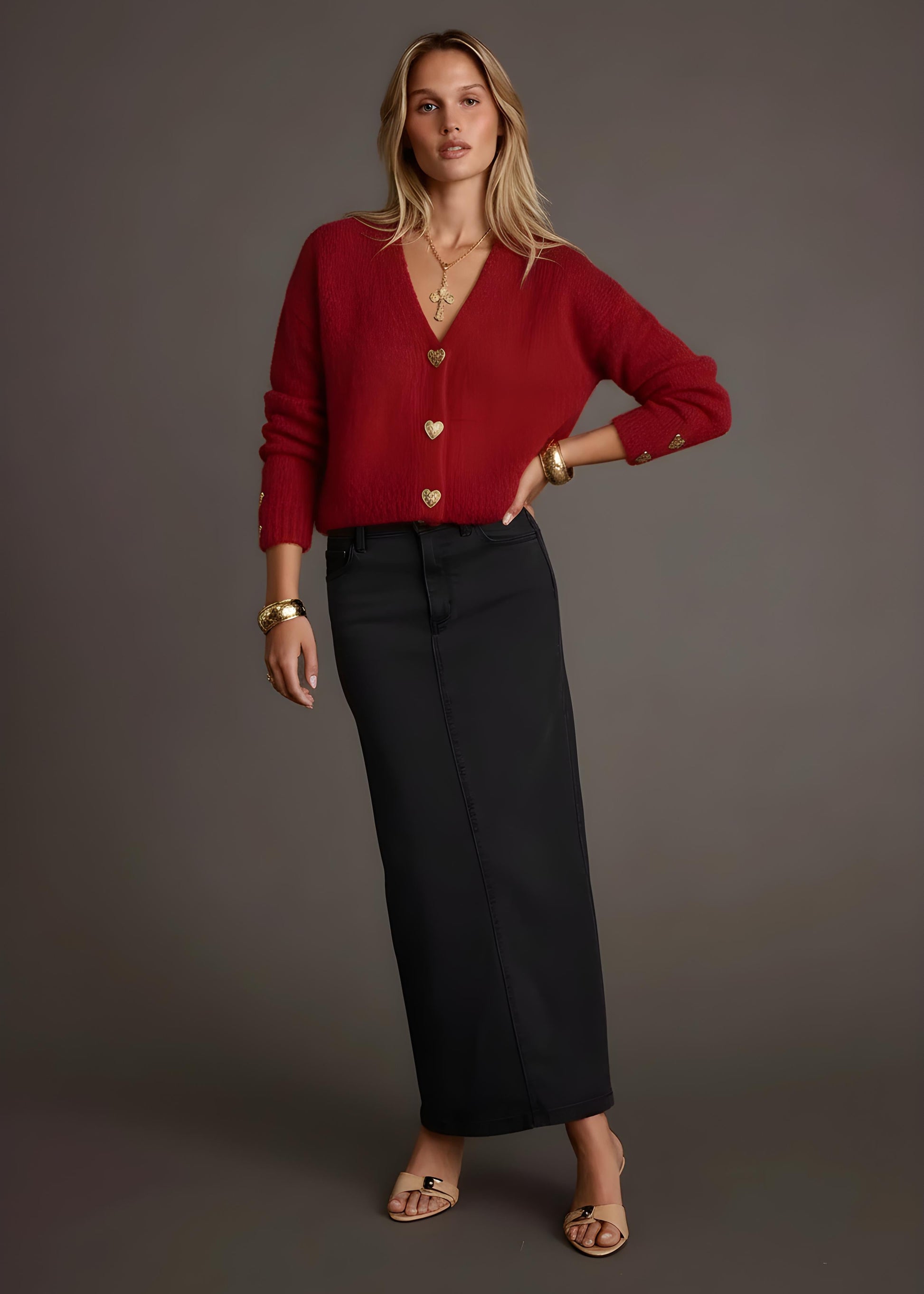 Heart Button Cardigan Sweater